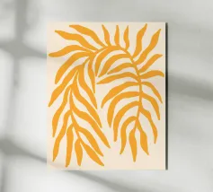 Ein minimalistisches botanisches Poster mit der Silhouette eines einzelnen strukturierten gelben Zweigs auf neutralem Hintergrund. Dieses moderne, von der Natur inspirierte Design verbindet organische Formen mit auffälligen Kontrasten und eignet sich perfekt für moderne, skandinavische oder japanische Interieurs, die nach eleganter Schlichtheit und Ruhe suchen.