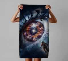 Tauchen Sie ein in eine atemberaubende kosmische Reise mit diesem lebendigen Sci-Fi-Kunstwerk, das eine einsame Silhouette zeigt, die über einem glühenden Raum-Zeit-Gitter steht, das sich zu einem hypnotisierenden Strudel windet. Darüber erhellt ein explosiver Nebel in schillernden Blau-, Grün- und Violetttönen das Universum, umgeben von Erde, Mars und einem strahlenden Mond. Dieses Design ist eine Mischung aus Surrealismus, Astronomie und futuristischer Geometrie - perfekt für Träumer, Weltraumliebhaber und Sammler moderner Kunst, die ein kühnes, inspirierendes Kunstwerk suchen.