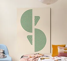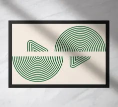 Dieses moderne Design präsentiert präzise geometrische Formen mit konzentrischen Linien in einem eleganten Grünton auf einem cremefarbenen Hintergrund. Die klare, symmetrische Gestaltung verleiht jedem Raum eine ruhige und zeitlose Ästhetik. Perfekt geeignet für Wandbilder, Kissen, Tassen oder Handyhüllen, bringt dieses Kunstmotiv minimalistischen Charme in moderne Wohnräume. Ein ideales Geschenk für Liebhaber von geometrischer Kunst und stilvollen Wohnaccessoires.