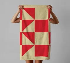 Dieses auffällige geometrische Kunstposter zeigt ein auffälliges, sich wiederholendes Muster aus leuchtend roten Quadraten und cremefarbenen/beigen Dreiecken. Die präzise Anordnung schafft ein dynamisches Raster und visuell interessante Formen, die an Retro- oder Memphis-Design erinnern. Dieser hochwertige digitale Kunstdruck wird mit einer beeindruckenden Auflösung von 7000x5000 Pixeln und 300 dpi produziert, was scharfe Linien und lebendige Farben für ein erstklassiges Poster garantiert, das ein Statement ist.