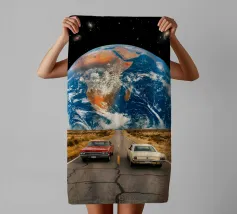Dieses fantasievolle Kunstwerk verbindet Science-Fiction-Wunder mit natürlicher Schönheit. Zwei Wanderer stehen in einem üppigen Wald und starren auf die Erde, die sich unvorstellbar nah am Himmel abzeichnet, während UFOs über ihnen schweben und helle Lichtstrahlen werfen. Ein plakatives Warnschild "Descent Zone" verleiht der surrealen Szene Humor und Abenteuer. Reichhaltige Details, kosmische Elemente und eine filmische Atmosphäre machen dieses Werk perfekt für Fans außerirdischer Kunst, Fantasielandschaften und einzigartiger Wanddekoration, die Neugierde und Gespräche anregt.