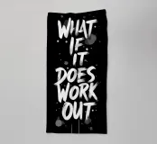 Dieses auffällige digitale Kunstwerk zeigt den kraftvollen und optimistischen Satz "WHAT IF IT DOES WORK OUT" in fetten, strukturierten weißen Buchstaben vor einem tiefschwarzen Hintergrund. Der Pinselstrich-Stil verleiht dem Text ein dynamisches und handgemaltes Gefühl, während verstreute weiße Punkte und subtile graue Tintenspritzer für Tiefe und visuelles Interesse sorgen. Diese Arbeit dient als inspirierende Erinnerung daran, Hoffnung zu haben und positive Ergebnisse in Betracht zu ziehen.