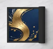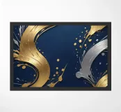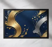 Dieser elegante, abstrakte Hintergrund zeigt fließende Gold- und Silberelemente mit kreisförmigen Akzenten auf einer sattblauen Leinwand und sorgt so für eine beeindruckende visuelle Wirkung, die sich für kreative Projekte eignet.