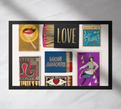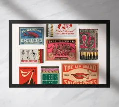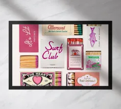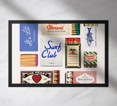 Ein kunstvoller Mix aus Vintage-Matchbooks von ikonischen Cafés, Restaurants und Küstenorten. Dieses Design versprüht Retro-Charme und erinnert an Roadtrips, Coffeeshops und Fischrestaurants am Meer. Ideal für alle, die Typografie, Designgeschichte und den Zauber kleiner Dinge lieben – perfekt für Küchen, Galeriewände oder kreative Arbeitsplätze.