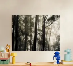 An image of a beautiful tree in the fog in the forest Acryl-Glas