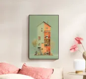 Diese vertikale Illustration zeigt einen gemütlichen Schnitt durch ein skurriles Haus, in dem ein charmanter Panda inmitten von warmtonigen Räumen voller Bücher, Pflanzen und Vintage-Charme lebt. Mit einer Mischung aus Minimalismus und Geschichtenerzählen bringt dieser Kunstdruck Gemütlichkeit und Neugierde in jedes moderne Interieur.