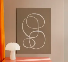 Diese moderne, abstrakte Illustration zeigt ein großen Knoten und Drehung in hellen Farben beige und weiß-creme, inspiriert von skandinavischem Boho-Stil. Die harmonischen Farbflächen und Linien erzeugen ein kindliches, verspieltes Muster, das die Schönheit der Natur feiert.