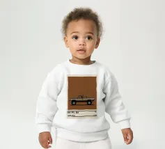 Unsere Baby Sweatshirts bestehen aus 85 % Bio-Baumwolle und 15 % recyceltem Polyester.