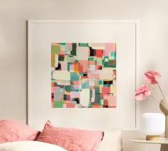 Tauchen Sie ein in die Welt der verspielten Geometrie mit Abstract Pattern , einem lebendigen Design, das jedem Raum einen Hauch von Farbe und Energie verleiht. Die frische Mischung aus Grün- und Gelbtönen vor einem zartrosa Hintergrund schafft eine fröhliche und einladende Atmosphäre. Dieses Design ist ideal für moderne Wohnräume und verleiht Ihrer Einrichtung eine einzigartige Note und bietet einen fröhlichen Hintergrund für das tägliche Leben. Ob zur Akzentuierung von Wänden im Arbeitszimmer, im Schlafzimmer oder im Wohnbereich - dies ist eine gute Wahl für eine lebendige Innenraumgestaltung.