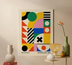 Dieses grafisch klare abstrakte Bauhaus Motiv zeigt ein rhythmisches Dreiecks- und Quadratmuster in kräftigem Rot auf warmem Cremegrund. Die streng geometrische Anordnung erzeugt eine spannungsvolle Balance aus Dynamik und Ordnung und erinnert an klassische Bauhaus- und Midcentury-Designprinzipien. Durch den bewussten Einsatz von Kontrast und Wiederholung wirkt das Muster modern, zeitlos und architektonisch zugleich. Die reduzierte Farbpalette verleiht dem Design Ruhe und Stärke, ohne an Ausdruck zu verlieren. Ideal als Wandbild für Wohnzimmer, Design Poster, moderne Wandkunst.