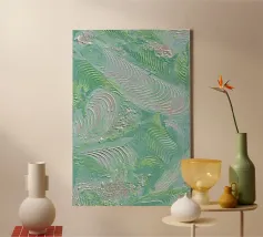 Abstraktes dynamisches Muster in grün und weiß. Leinwand