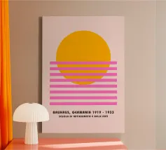 Tauchen Sie mit diesem lebhaften abstrakten Kunstdruck in die fesselnde und strukturierte Welt des Bauhauses ein. Das Design zeigt eine komplexe und doch harmonische Komposition ineinandergreifender geometrischer Formen - Kreise, Viertelkreise und Quadrate - in einer dynamischen Farbpalette aus lebhaftem Türkis, sanftem Lavendel und tiefem Pflaumenrot. Dieses Stück verkörpert perfekt den innovativen Geist und die funktionale Schönheit, die für die Bauhaus-Bewegung von zentraler Bedeutung waren, und schafft ein visuell anregendes Muster, das sowohl modern als auch zeitlos ist. Mit einer beeindruckenden Auflösung von 7000x5000 Pixeln und einer Auflösung von 300 dpi garantiert dieses hochwertige Digitalkunstwerk, dass jedes einzelne Element des Bildes perfekt zur Geltung kommt.
