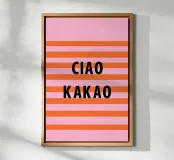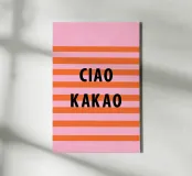 „Ciao Kakao“ – ein trendiger Streifen Abschiedsgruß in stilvoller Typografie, der italienisches Flair mit einer fröhlichen Farbpalette in Pink und Orange kombiniert. Ideal für ein modernes, minimalistisches Poster!
