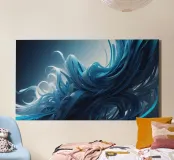 Fließende Blautöne erzeugen einen abstrakten Welleneffekt in dynamischer Kunst Leinwand