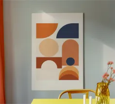 Dieses moderne Kunstwerk verbindet klare Formen mit sanften Farbverläufen in Apricot, Rosé und Petrolblau. Die reduzierte Komposition mit zwei halbkreisförmigen Flächen schafft Ruhe, Balance und stilvolle Ästhetik. Perfekt für moderne Interiors, skandinavische Einrichtungen und alle, die ruhige Wandkunst mit Farbakzent lieben.