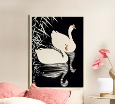 Erleben Sie die beeindruckende Dualität und tiefe Einheit in Hilma af Klints "Gruppe IX-SUW, Der Schwan, Nr. 1" (1915). Dieses ikonische abstrakte Werk zeigt meisterhaft einen weißen und einen schwarzen Schwan, die sich mit ihren Schnäbeln vor einem schwarz-weiß geteilten Hintergrund berühren. Es symbolisiert das harmonische Gleichgewicht der gegensätzlichen Kräfte und die spirituelle Verbindung. Klints Vorreiterrolle in der abstrakten Kunst wird durch ihre symbolische Komposition und den kühnen Einsatz von Kontrasten kraftvoll vermittelt. Unser hochwertiges Digitalposter mit einer beeindruckenden Auflösung von 7000x5000 Pixeln und 300 dpi gibt jedes noch so kleine Detail makellos wieder.