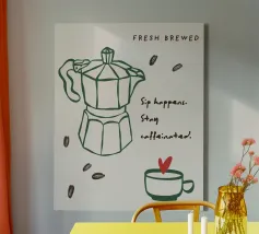 Willkommen bei Coffee Club - dem Ort für alle, deren Tag wirklich mit dem ersten Schluck Kaffee beginnt. Hier finden Sie liebevoll gestaltete Designs, die von allem inspiriert sind, was mit Kaffee zu tun hat: moderne Typografie, witzige Cartoons, minimalistische Illustrationen, botanische Bohnenmotive und kluge Aussagen für alle, die ihren Kaffee ein wenig zu ernst nehmen - oder gerade ernst genug. Jedes Kunstwerk wurde mit Sorgfalt, einem Hauch von Humor und einem Auge für warme, gemütliche Ästhetik erstellt. Ob kühn und dunkel wie ein Espresso oder weich und sanft wie ein Milchkaffee, jedes Design trägt diese besondere Mischung aus Komfort und Energie in sich. Alle Drucke werden in hoher Qualität hergestellt, so dass Linien, Formen und Wörter klar, ausdrucksstark und langlebig erscheinen - perfekt für Küchen, Büros, Kaffee-Ecken oder als Geschenk für echte Kaffee-Liebhaber. Coffee Club bringt mehr als nur Wandkunst - es bringt ein Gefühl: den Moment der Ruhe, der Freude und des "Lass mich erst einen Kaffee trinken". Kunst, die so belebend ist wie ein gutes Gebräu.
