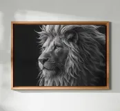 Dieses eindrucksvolle Schwarz-Weiß-Porträt eines majestätischen Löwen zeigt die beeindruckende Mähne und die kraftvolle Schnautze in detailreicher Nahaufnahme. Die minimalistische Komposition und die feine Fellstruktur unterstreichen die natürliche Schönheit und Stärke dieses wildlebenden Tieres.