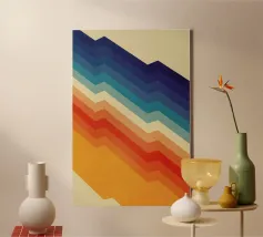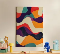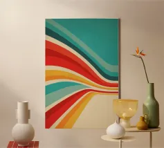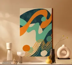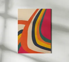 Dieses Poster versprüht pure Retro-Vibes: Dynamische Kurven in warmen Orange-, Rot- und Gelbtönen treffen auf beruhigendes Türkis und Creme – ein klarer Verweis auf das Design der 70er-Jahre. Der Vintage-Look mit feiner Patina erzeugt nostalgischen Charme und macht das Motiv zum echten Eyecatcher. Ideal für alle, die Farbe, Bewegung und Retro-Ästhetik in ihre Räume bringen möchten. Ob Wohnzimmer, Büro oder Kreativbereich – dieses Bild setzt ein mutiges, stilvolles und deshalb zeitloses Statement.