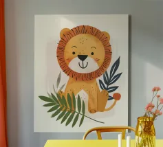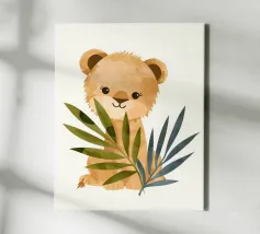 Niedliches Löwenjunges sitzt inmitten von üppigem Laub im tropischen Dschungel Leinwand