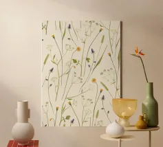 Delicate sprigs and early blooms stand tall in this fresh composition, celebrating the organized chaos of nature’s seasonal rise. A gentle palette of soft greens, pale yellows, and whispering pinks invites a feeling of lightness and openness.