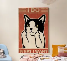 Diese freche Katze sagt, was sie denkt – mit einem Blick zwischen Gleichgültigkeit und Überlegenheit. Der minimalistische Stil, die kräftigen Farben und der ikonische Mittelfinger machen dieses Poster zur ultimativen Anti-Stress-Deko. Perfekt für Büro, WG, Studio oder als witziges Geschenk für alle mit einem Hang zu ironischer Ehrlichkeit und derben Katzenhumor.