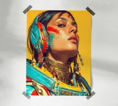 Ein visionäres Porträt von Ada Lovelace – der ersten Programmiererin der Geschichte, neu interpretiert im futuristischen Cyberpunk-Stil. Tattoos, Tech-Gadgets und der binäre Code „0/1“ verbinden historische Genialität mit moderner Ästhetik. Für alle Fans von Female Empowerment, IT-Kultur und Digital Art. Perfekt als Poster für Arbeitszimmer, Galerien oder moderne Lernräume.
