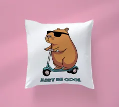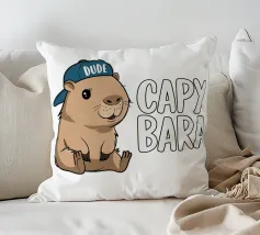 Ein fröhliches Wasserschwein mit Sonnenbrille sitzt auf einer Bank und genießt eine Wassermelone mit tropischem Flair. Der Text darüber lautet "I'M NOT LAZY" und darunter "I'M JUST ON CAPYBARA TIME".
