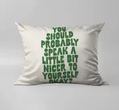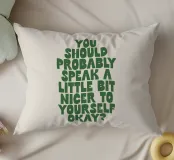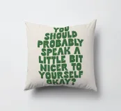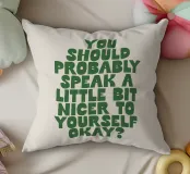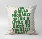 Mit seinen kräftigen grünen, handgezeichneten Buchstaben auf einem weichen, beigen Hintergrund strahlt dieses Stück Wärme und Selbstmitgefühl aus. Der auffällige Kontrast schafft einen Blickfang, der zu jedem Einrichtungsstil passt. Perfekt für alle, die ihre Umgebung mit Positivität und Selbstliebe erfüllen wollen. Dieser Druck ist ideal für Schlafzimmer, Büros oder Wohnräume und bringt eine sanfte Erinnerung an Ihre Wände. Der handgefertigte Schriftzug verleiht dem Kunstwerk eine persönliche, einladende Note. Verwandeln Sie Ihr Zuhause mit diesem aufmunternden Werk, das zu freundlichen Selbstgesprächen und emotionalem Wohlbefinden anregt.