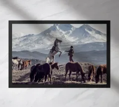Horses in the Snow - Black and White Winter Photography Prin