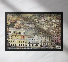 Baum und Architektur: Rhythmen" (1920) von Paul Klee verschmilzt das Organische und das Konstruierte zu einer visuellen Sinfonie. Durch abstrakte Rhythmen, strukturierte Linien und weiche Erdtöne evoziert Klee die stille Harmonie zwischen Natur und Architektur. Eine meditative Komposition, die Gleichgewicht, Wachstum und Ordnung in einer einzigartigen Sprache der Moderne widerspiegelt.