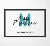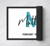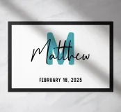 Verleihen Sie diesem stilvollen Aufdruck von Initialen und Namen eine persönliche Note. Elegant und modern ist es das perfekte Geschenk für Neugeborene, Hochzeiten oder als Wohnaccessoire.