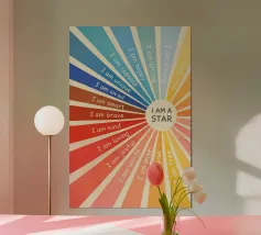 This colorful artwork features flowing rainbow-like waves accompanied by the uplifting phrase “Progress Is Not Linear.” It serves as a gentle reminder that growth comes with ups and downs, and setbacks are part of the journey. Perfect for motivating any space with positivity, resilience, and encouragement for self-development.