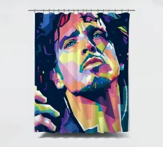 Ein lebhaftes und geometrisches Porträt von Sinead O'Connor im WPAP-Stil mit kühnen, kantigen Formen und einer auffälligen Reihe heller, kontrastreicher Farben. Das Kunstwerk fängt ihre ikonischen Merkmale, wie ihren rasierten Kopf, ihre stechenden Augen und ihren starken Gesichtsausdruck, mit scharfen, fragmentierten Farbblöcken ein. Die Komposition betont Tiefe und Emotionen und behält gleichzeitig die unverwechselbare kubistische Pop-Art-Ästhetik von WPAP bei, wodurch eine visuell dynamische und moderne Hommage an die legendäre Sängerin entsteht.