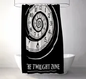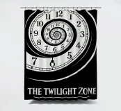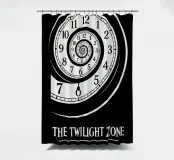 The Twilight Zone Druck, Zeitparadoxon, alternatives Filmposter, minimale Wandkunst, schwarz-weiß, Spiraluhr, 5. Dimension, Geschenk für Filmfans