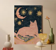 Bohème Katze Druck, Himmlischer Mond Stern Druck, Tier Boho