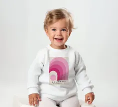 Unsere Baby Sweatshirts bestehen aus 85 % Bio-Baumwolle und 15 % recyceltem Polyester.