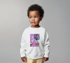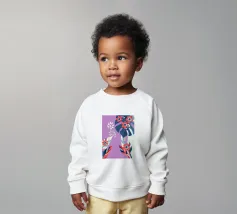 Unsere Baby Sweatshirts bestehen aus 85 % Bio-Baumwolle und 15 % recyceltem Polyester.