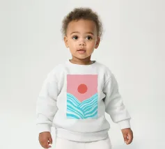 Unsere Baby Sweatshirts bestehen aus 85 % Bio-Baumwolle und 15 % recyceltem Polyester.