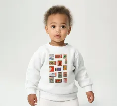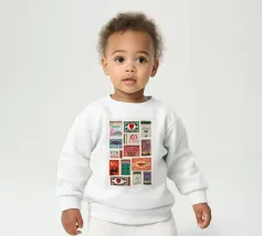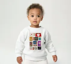 Unsere Baby Sweatshirts bestehen aus 85 % Bio-Baumwolle und 15 % recyceltem Polyester.