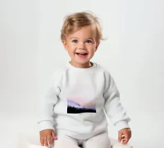 Unsere Baby Sweatshirts bestehen aus 85 % Bio-Baumwolle und 15 % recyceltem Polyester.