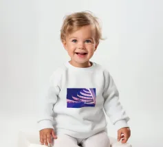 Unsere Baby Sweatshirts bestehen aus 85 % Bio-Baumwolle und 15 % recyceltem Polyester.
