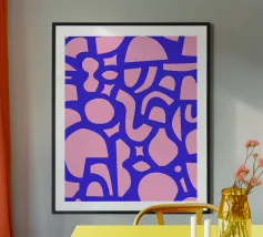 Ein modernes Pop-Art-inspiriertes Poster mit Basilikum als grafisches Hauptmotiv. Die tiefgrünen, stilisierten Blätter setzen sich plakativ vom leuchtend pinken Hintergrund ab, ergänzt durch den handschriftlich wirkenden Schriftzug „BASIL“ in dunklem Blau. Dieses minimalistische Design im Artezza-Stil spielt mit Kontrasten und Farbenfreude und eignet sich perfekt als Küchenposter, Pflanzen-Dekoration oder stylisches Kräuter-Statement für dein Zuhause.
