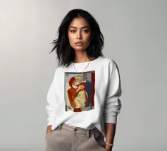 Dieses Gemälde zeigt zwei abstrakte Figuren in einer engen, intimen Pose. Die Verwendung von geometrischen Formen und kräftigen Farben verleiht der Szene Tiefe und Komplexität.
