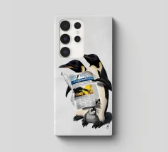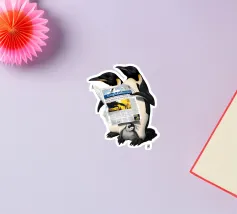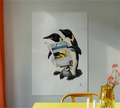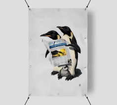 Komische Illustration der Interpretation des Schwarz-Weiß-Witzes über Pinguine und Zeitungen.