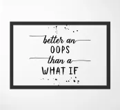 Ein paar Worte und so viel Wahrheit! Ein Design das zum Lebensmotto passt. BETTER AN OOPS THAN A WHAT IF. Bereue lieber einmal etwas, als niemals etwas gewagt zu haben!