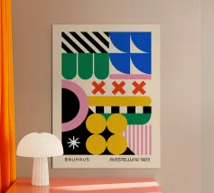 Dieses grafisch klare abstrakte Bauhaus Motiv zeigt ein rhythmisches Dreiecks- und Quadratmuster in kräftigem Rot auf warmem Cremegrund. Die streng geometrische Anordnung erzeugt eine spannungsvolle Balance aus Dynamik und Ordnung und erinnert an klassische Bauhaus- und Midcentury-Designprinzipien. Durch den bewussten Einsatz von Kontrast und Wiederholung wirkt das Muster modern, zeitlos und architektonisch zugleich. Die reduzierte Farbpalette verleiht dem Design Ruhe und Stärke, ohne an Ausdruck zu verlieren. Ideal als Wandbild für Wohnzimmer, Design Poster, moderne Wandkunst.