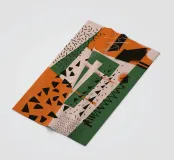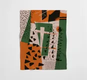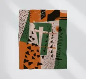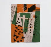 A dynamic collage of clashing patterns and textures, including dots, stripes, and abstract scribbles. The composition in beige, black, and red is a bold and eclectic statement, celebrating creative chaos.