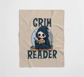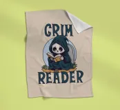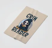Ein kleiner Sensenmann sitzt vor einem Grabstein, in seinen dunklen Mantel gehüllt und ganz in die Lektüre vertieft. Das Wortspiel "Grim Reader" spielt mit den Wörtern "Sensenmann" und "Leser" und schafft so die perfekte Verbindung zwischen dem Dunklen und dem Literarischen. Perfekt für Liebhaber von Büchern, cleverem Humor und einem Hauch von Gothic-Ästhetik!