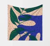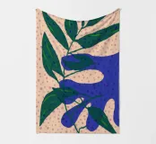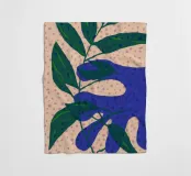 A close up, stylized illustration of a large, dark blue leaf with visible veins, against a simple background, focusing on the beauty of its natural form.